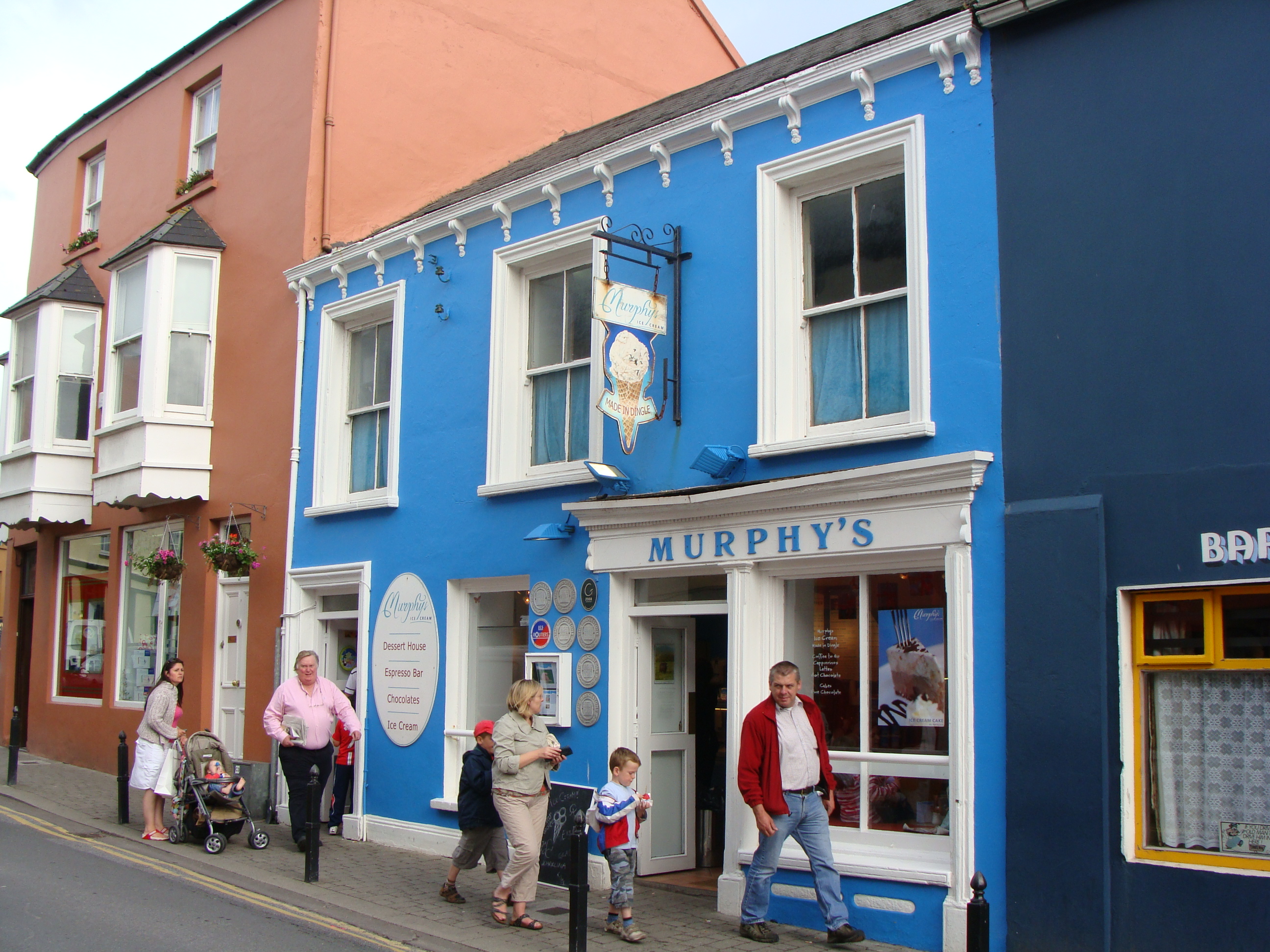 Dingle itself is a small seaside town, whose most famous resident is a dolphin named Fungie who showed up sometime in the 1980s and seems to have stayed on ever since.  Don’t expect a metropolis, but take advantage of the country!  The town itself is very pretty, all brightly painted houses, pubs, and the gorgeous Irish sea.  It’s also home to Murphy’s Ice Cream parlor which is rather proud of it’s general Irishness (the cream is made from a breed of cow found only in Ireland and fed on Irish grass, etc.), but let me tell you, it pays out!  That stuff is to die for!