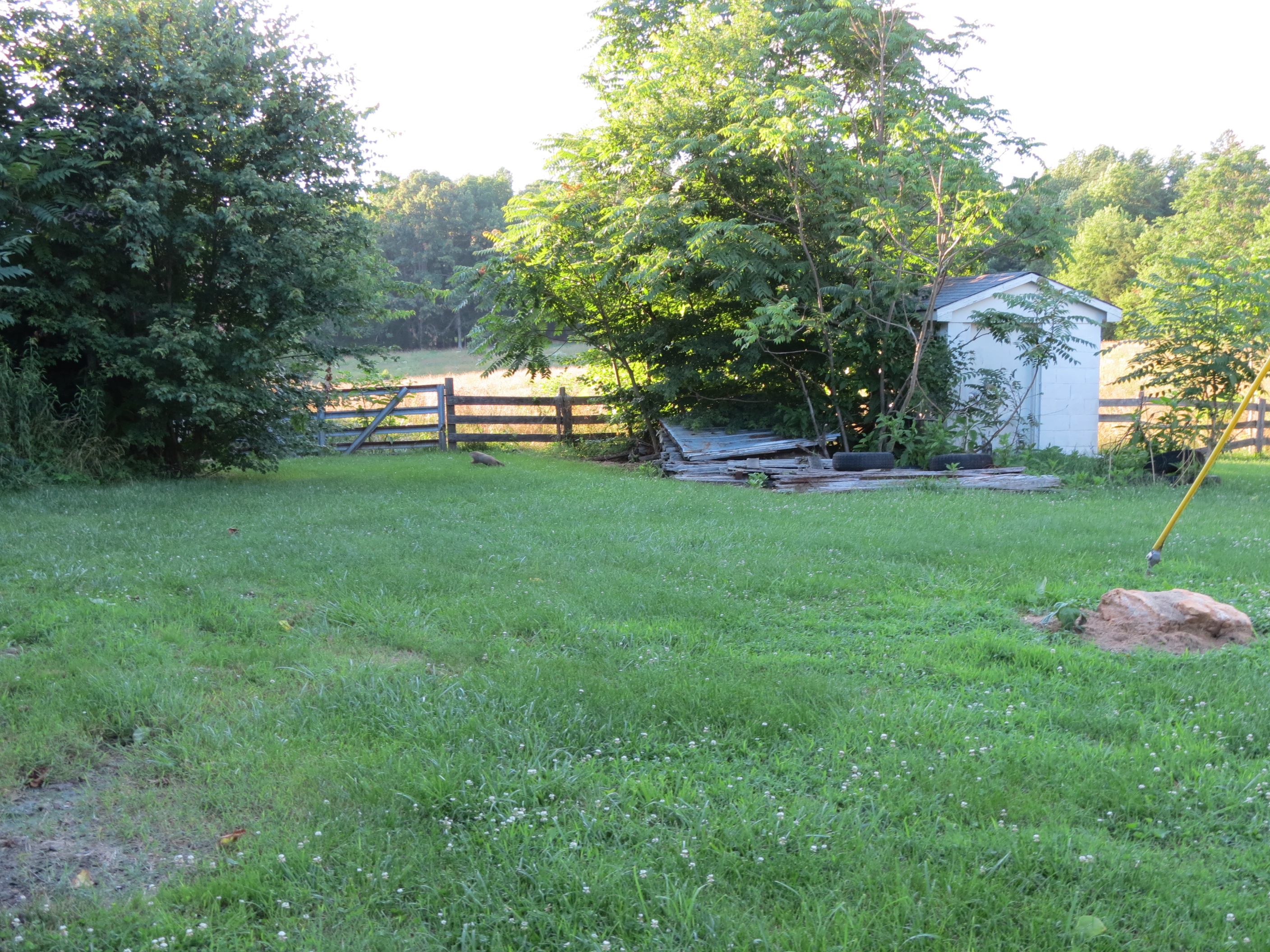 Goodness knows what this is – either a groundhog or a beaver. Whatever it was, it was as long as my leg and could scuttle like lightning! I barely snapped a shot before it took off through the fence. Mika just about lost it over this one, the rabbits were as nothing to it!