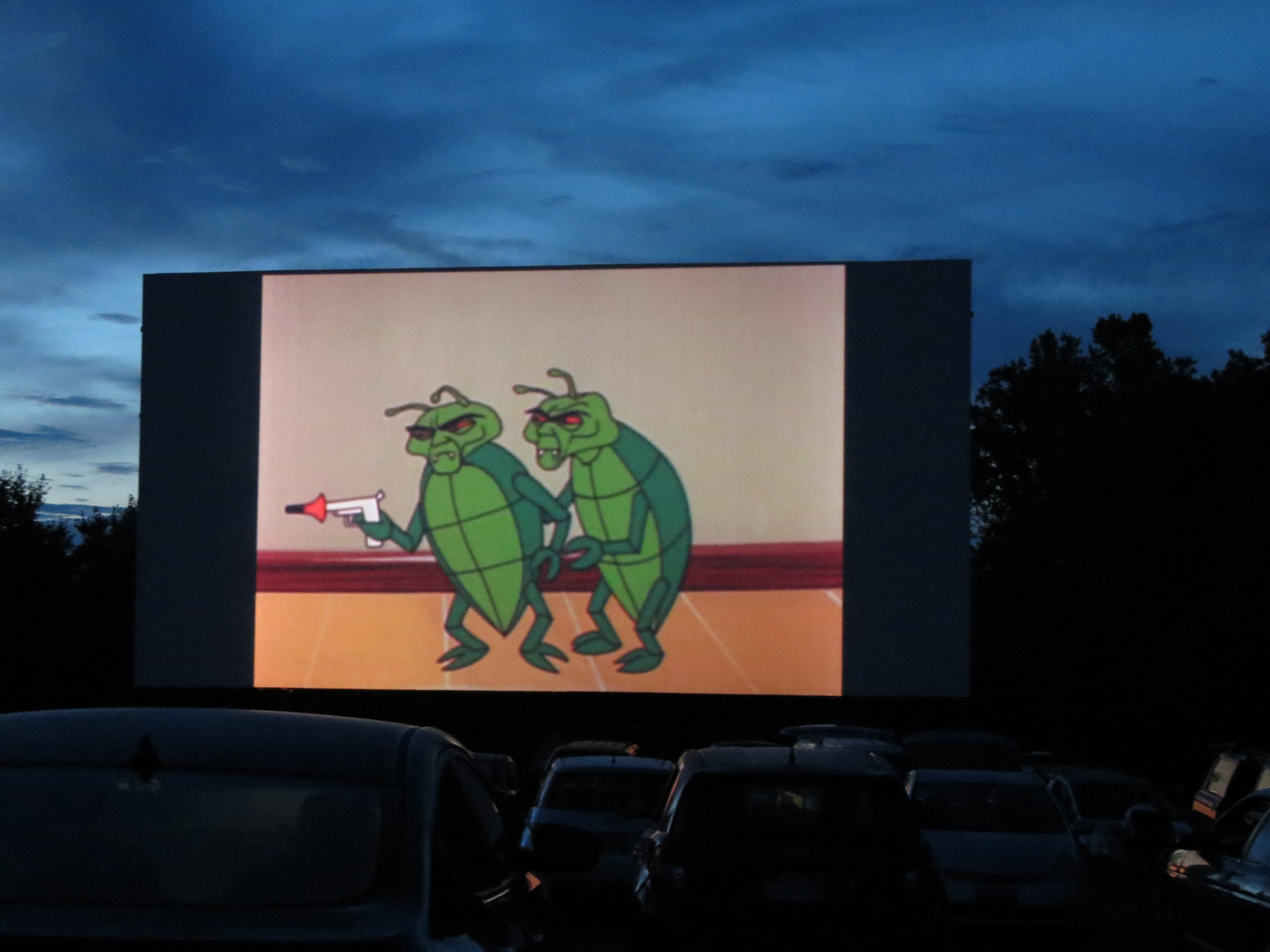 With everyone’s car radios around you tuned in the movies, the audio is in magnificent stereo and drowns out even the nighttime frogs and bugs. Fireflies add rather perfectly to the atmosphere too. Just pull up some gravel and enjoy! I highly recommend it.
