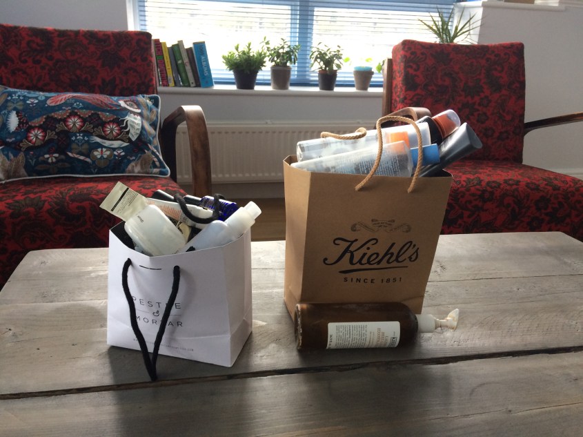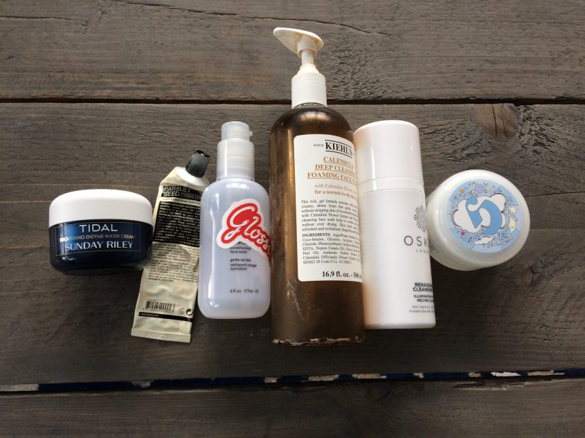 Another bottle of Glossier Milky Jelly cleanser down. I already had a bottle of this on stand by that I purchased over the summer, but I’m ridiculously lucky and got two free additional bottles from attending the Glossier pop up earlier this summer, and then scored another back up as the G-team apparently mailed out some gift boxes as follow up to that press event later in the summer. Because they are freaking brilliant at marketing. Long story short, I haven’t had to repurchase this in a while, but I fully intend to when my stash runs down again. It’s a really good product, perfect as a morning cleanser or a second cleanse in the evening (if I’ve been wearing a full face of makeup and SPF all day). My evening cleanser for months has been the Oskia Renaissance Cleansing gel–a gel/balm formula that turns to oil on your skin. It dissolves most makeup and doesn’t strip your skin in the slightest. The Kiehl’s cleanser has been included in this stash for the sake of honesty. Technically it was Jeff’s product but I made liberal use of it in the shower and contributed to its demise–so into the bag it went! I’ve used up two masks, the Aesop Parsley Seed mask and Moisturizing Moon mask. I may repurchase them someday, but I want to try some similar products from other brands first…once my current mask stash is depleted. I definitely would not repurchase the Tidal cream by Sunday Riley–odd smell, nothing special as a moisturizer, and sparkly flecks in it to boot.