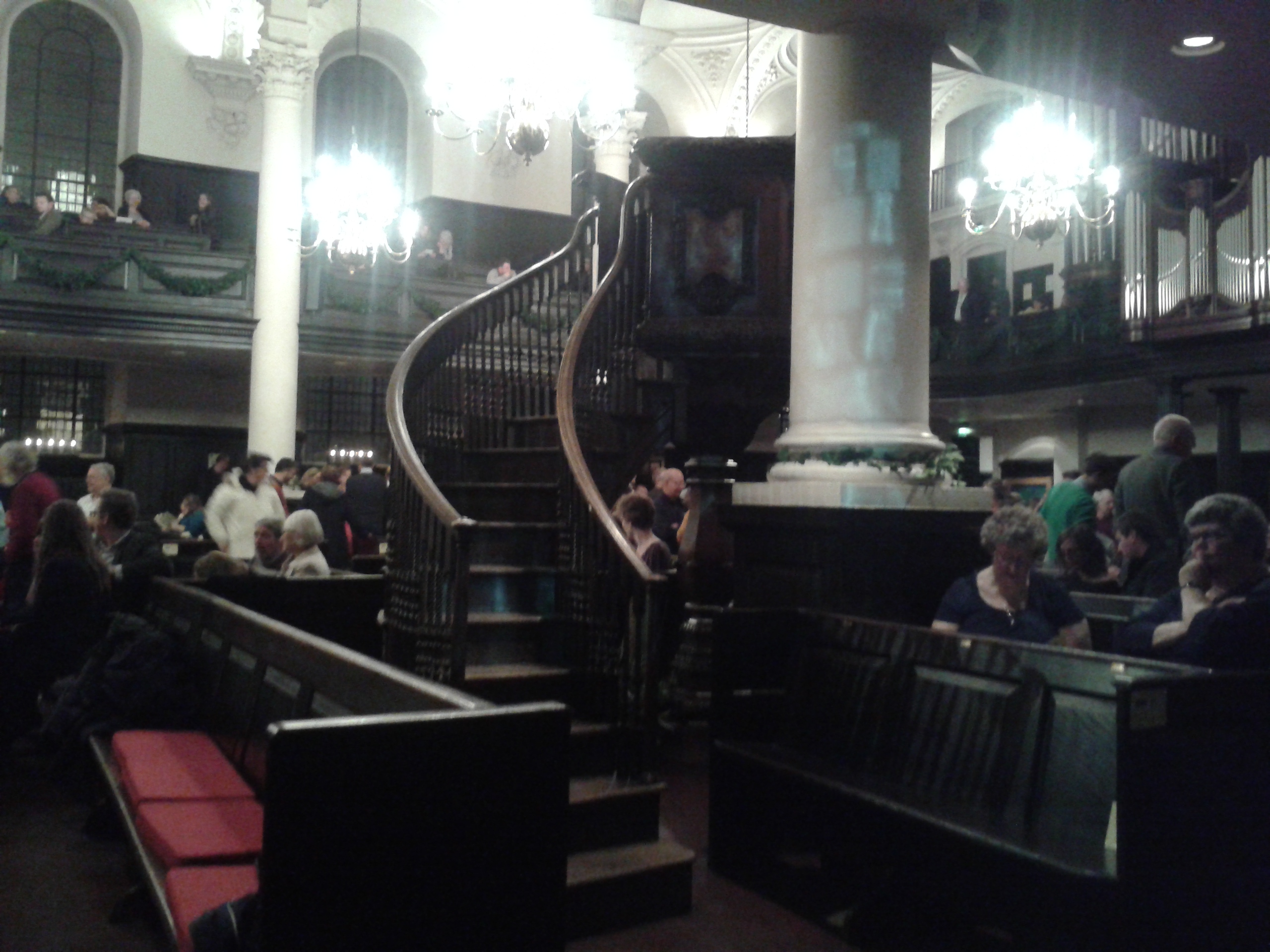 But as for building new traditions for just the two of us, I wouldn’t mind an annual repeat of Saturday night! Feeling just a bit detached from Christmas this year, in spite of the gorgeousness of London in full holiday splendor, I booked us a couple of tickets for a performance of Handel’s Messiah at St. Martin-in-the-Fields church, which makes up a part of Trafalgar Square.