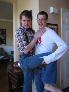 Most of the time, we are model children in public (seriously, we’re the kind you brag about at dinner parties), but it would be a lie to say that we’re completely civilized. In private we tend towards the ridiculous.. We have two dinnertime rules 1) don’t wait for the hostess to start eating, unless it’s a formal dinner or holiday, and 2) “No bayonetting at the table.” I actually have no idea how this entered the lexicon, but I am willing to be money that some sibling was poking another with a stick at the time. Our napkins may be on our laps, and we may know exactly what forks to use for fish, desert, and salads, but this veneer of gentility hides inner savagery.