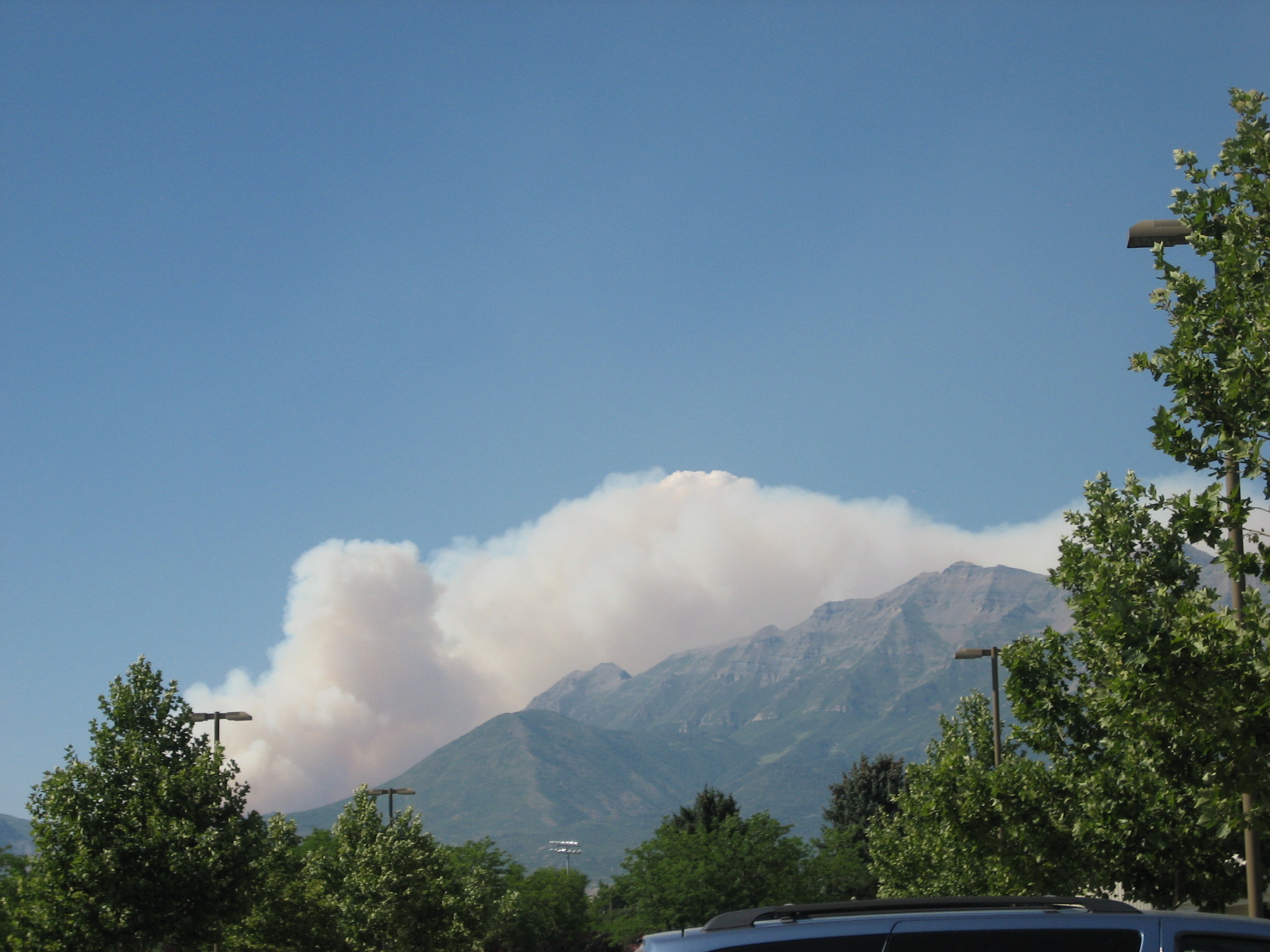 Heading out to my car for work this morning, I was startled by a roaring sound above my head. It turned out to be a low drifting balloon from a local July 4th festival (which apparently happened on the 3rd). Believe it or not it was much lower to start with, I had to scrambled in my purse for the camera a bit and the balloon had risen by the time I fished it out. These were all over the sky this morning.That’s, um, not a cloud. Half of the country is on fire, in case you hadn’t noticed, and apparently so is the city a bit up from us. We’ll keep an eye on this one, I think.