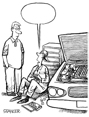 So, when I took her in to get her oil changed yesterday, I batted my eyelashes and asked the mechanics if they could pretty please also check the belts for me because I was ever so worried about them (no charge!). Unfortunately I went to pick her up I got some scary news. Both the timing and driving belts seemed to be in immediate danger of molecular disintegration. And even a non-tech type like me knows that when those go, the entire car goes. They recommended immediate replacement but as it was already late afternoon and as it was going to be “at least a half day job,” they said the earliest they would be able to do it was today.